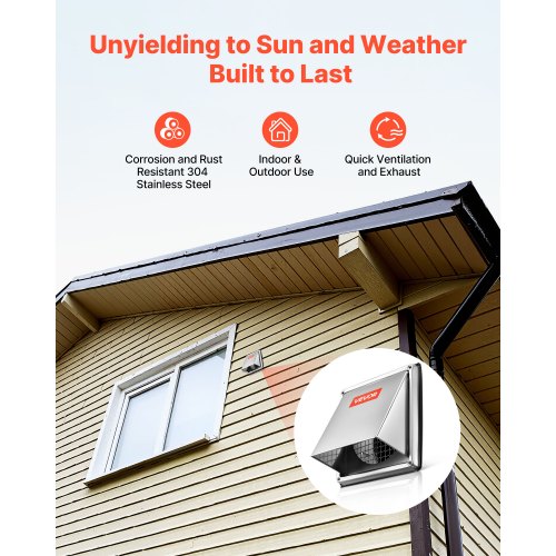 VEVOR Copertura per Presa d'Aria Esterna da 97 mm, Copertura Quadrata per Cappa di Ventilazione in Acciaio Inox, con Schermo di Protezione Integrato, per Casa, Bagno, Garage, 1 Pezzo, Argento
