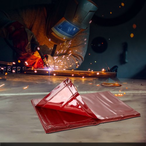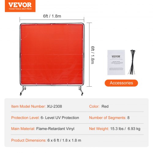VEVOR Tenda per Saldatura 1,8x1,8m Tenda di Protezione per Saldatura in Vinile Ignifugo, Parete di Protezione per Saldatura con 4 Ruote Girevoli Coperta per Saldatura con Protezione UV Colore Rosso