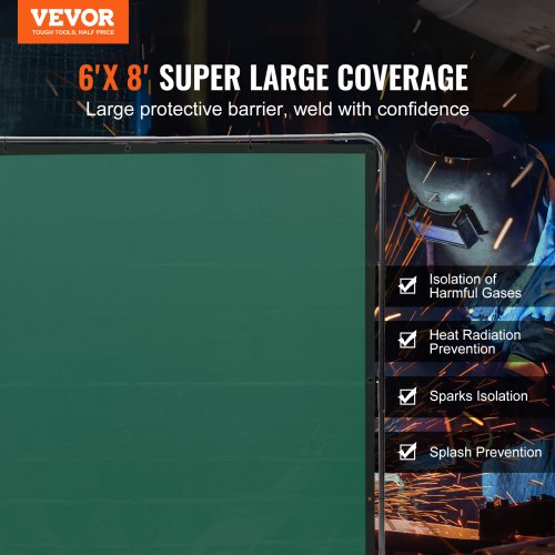VEVOR Tenda per Saldatura 1,8x2,4m Tenda di Protezione per Saldatura in Vinile Ignifugo, Parete di Protezione per Saldatura con 4 Ruote Girevoli Coperta per Saldatura con Protezione UV Colore Verde