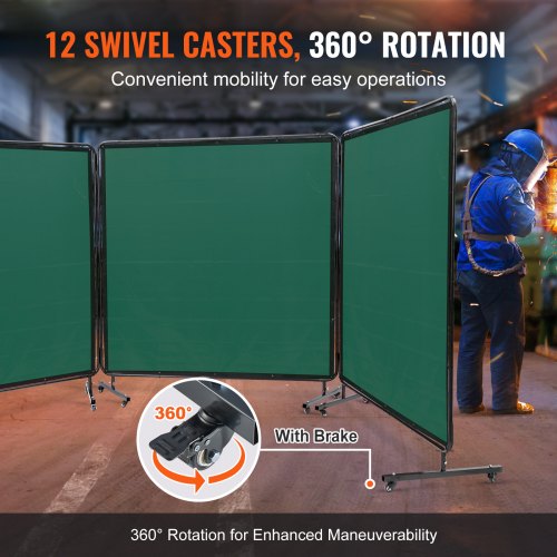 VEVOR Schermo per saldatura con telaio 3 pannelli 1,8 x 1,8 m Schermo per tenda per saldatura 12 ruote