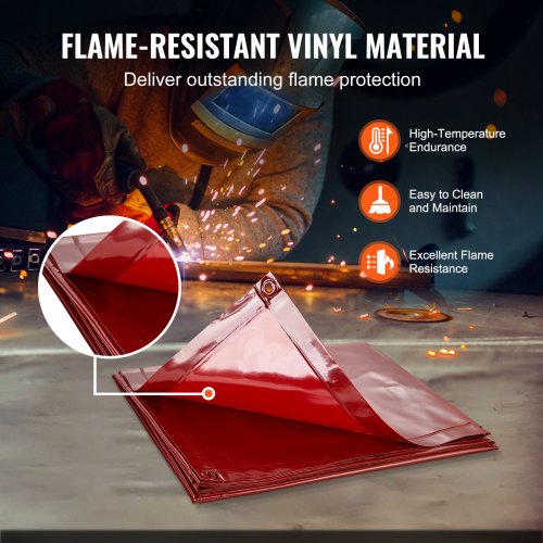 VEVOR Tenda per Saldatura 1,8x2,4m Tenda di Protezione per Saldatura in Vinile Ignifugo, Parete di Protezione per Saldatura con 4 Ruote Girevoli Coperta per Saldatura con Protezione UV Colore Rosso