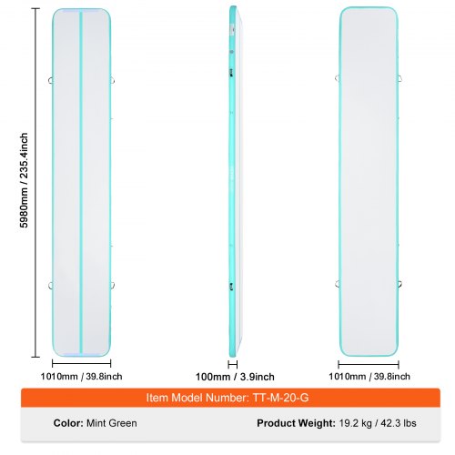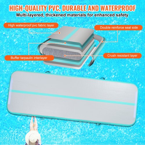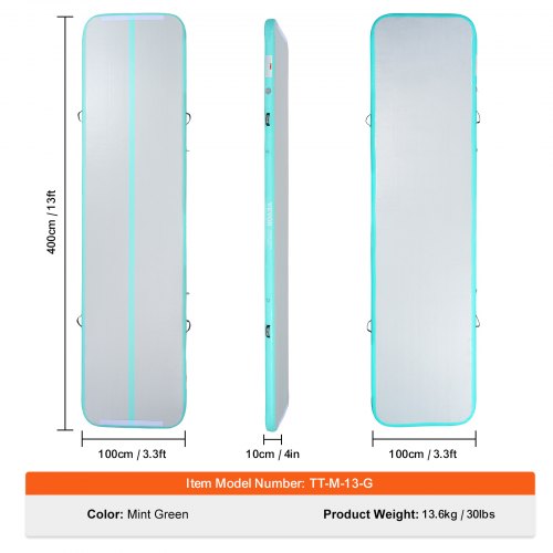 VEVOR Tappetino da Ginnastica Gonfiabile da 4 Pollici, Pista Tumble Pompa Elettrica, Tappetini da Allenamento per Uso Domestico/Palestra/Yoga/Cheerleader/Spiaggia/Parco/Acqua, 10 Piedi, Verde Menta
