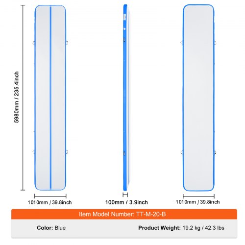 VEVOR 6,1 m Air Track Gonfiabile Allenamento Tumbling Ginnastica Tappetino da Ginnastica con Pompa
