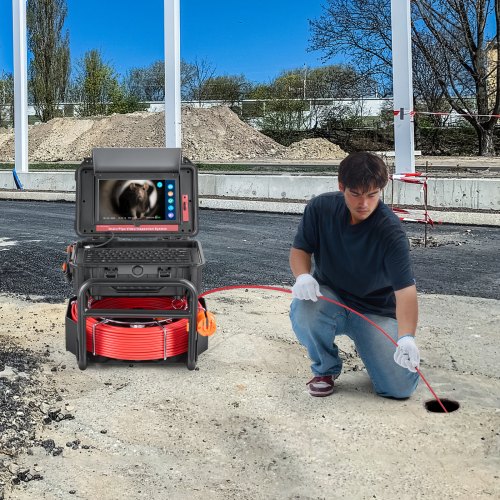 VEVOR Kit Telecamera con Endoscopio per Ispezione di Fognatura Schermo Colorata 9 Pollici Cavo Impermeabile 91,5m, Telecamera Ispezione Portatile Batteria 4500 mAh per Tubi Angolazione Visiva