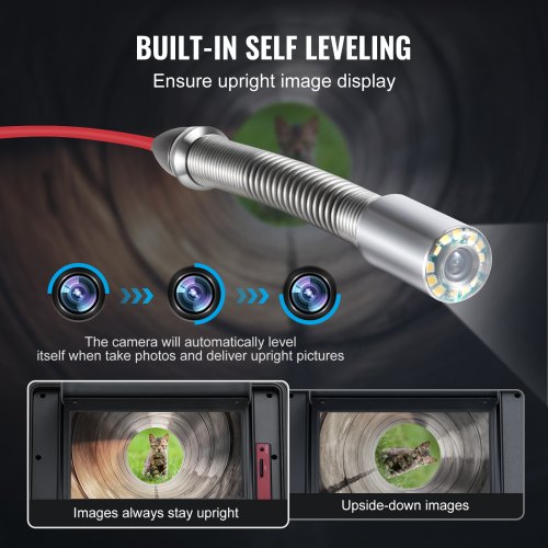 VEVOR Telecamera per Fognatura 30 m Telecamera per Scarichi Autolivellante con Trasmettitore 512 Hz Contatore di Distanza, Schermo da 228,6 mm Telecamera Idraulica HD 1080P a Serpente con Luce-12 LED