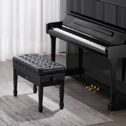 VEVOR Panca per Pianoforte 560 x 340 x 490 mm Sedia per Tastiera con Altezza Regolabile, Cuscino Imbottito, Scomparto Portaoggetti per Libri di Musica, Sgabello per Pianoforte in Legno, per Toeletta
