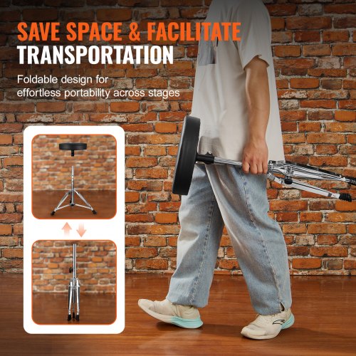 VEVOR Sgabello per Batteria, 540-670 mm Altezza Regolabile, Sgabello per Batteria Imbottito Sedile Piedini Antiscivolo Bacchette 5A Portata Massima di Peso 227 kg Sedia per Batteria Girevole a 360°