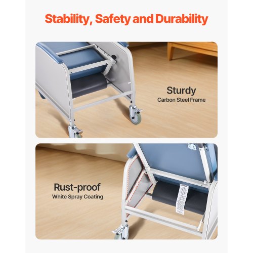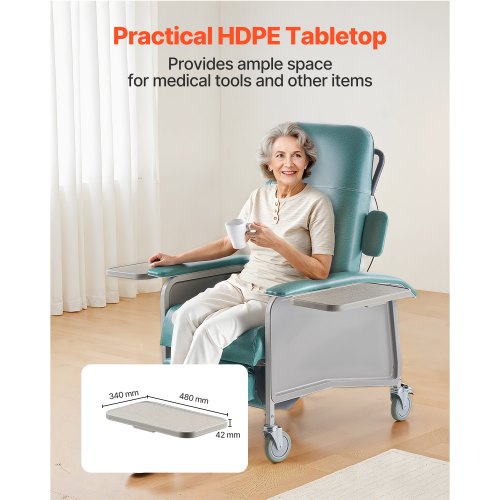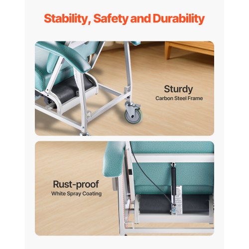 VEVOR Poltrona Reclinabile Medica, Sedia Reclinabile Regolabile da 4 Posizioni, Poltrona Medica Trendelenburg con 4 Ruote, Seduta Morbida per Ospedale, Casa di Cura, Assistenza Domiciliare