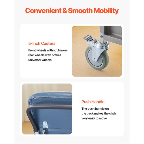 VEVOR Sedia da Trasferimento Elettrica per Pazienti, Sedia a Rotelle Elettrica con Sedile Diviso a 180° e Padella, Sedia Comoda da Comodino con Ruote Girevoli Bloccabili per Anziani Disabili, 99,7 kg