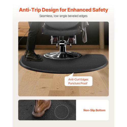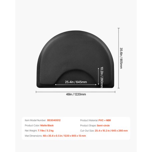 VEVOR Tappetino da Salone per Parrucchieri 1220 x 905 mm Tappetino Semicircolare per Sedia da Salone, 13 mm di Spessore, con Taglio Rotondo, Facile da Pulire e Bordi Smussati Anti-Inciampo, Nero Opaco
