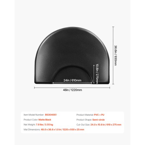 VEVOR Tappetino da Salone per Parrucchieri 1220 x 930 mm Tappetino Semicircolare per Sedia da Salone, 25 mm di Spessore, con Taglio Rotondo, Facile da Pulire e Bordi Smussati Anti-Inciampo, Nero Opaco