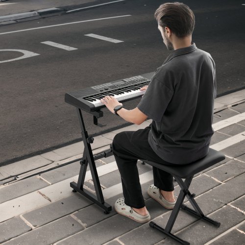 VEVOR Supporto per Tastiera di Pianoforte Elettrico di Stile Z con Sedia, Supporto per Tastiera a 54-88 Tasti Capacità Carico max. 113kg ca. Larghezza Altezza Regolabile, Supporto a Rotelle Forma Z