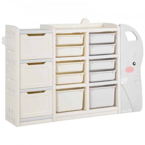 VEVOR Scaffale per Giocattoli a Forma di Elefante, Organizzatore per Giocattoli Multifunzionale a 4 Ripiani con 10 Contenitori in Plastica Flessibile, per Camera da Letto e Aula, Grigio e Beige