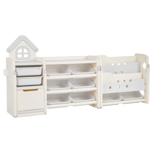 VEVOR Scaffale per Giocattoli in HDPE, Organizzatore per Giocattoli Multifunzionale a 4 Ripiani con 10 Contenitori in Plastica Flessibile e Tavolo da Disegno, per Camera da Letto e Aula, Grigio Beige