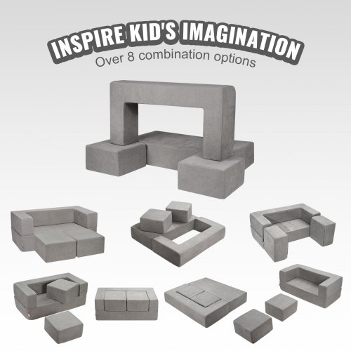 VEVOR Divano Modulare per Bambini, 10 Pezzi, Divano Trasformabile e Componibile con Fodera Rimovibile, Sedia Fai da Te con Cuscino in Schiuma, Mobili Creativi per Sala Giochi, Divano per Bambini