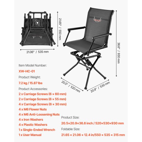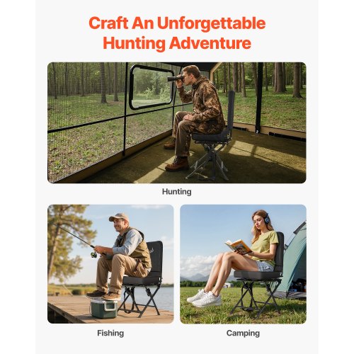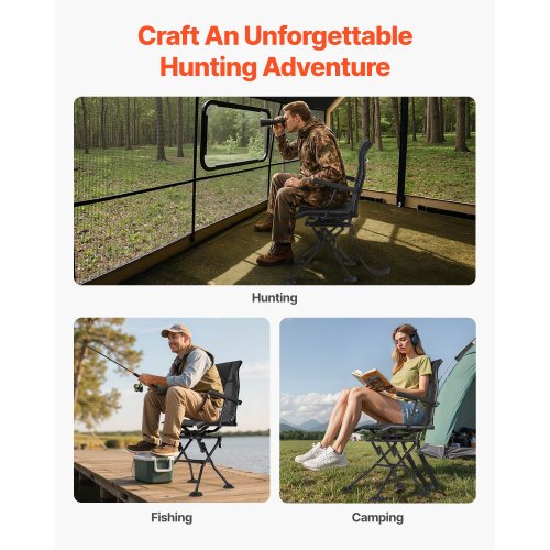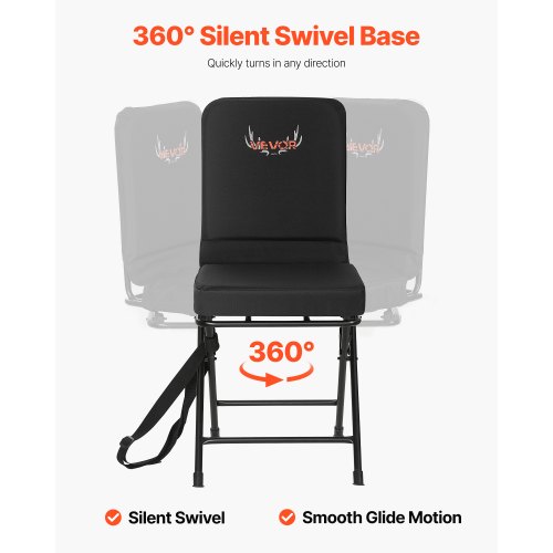 VEVOR Sedia da Caccia Campeggio Pieghevole, Sedia da Pesca con Braccioli, Tracolla Regolabile Capacità di Carico 136 kg, Rotazione Silenziosa a 360°, Picnic, Giardino, Esterno