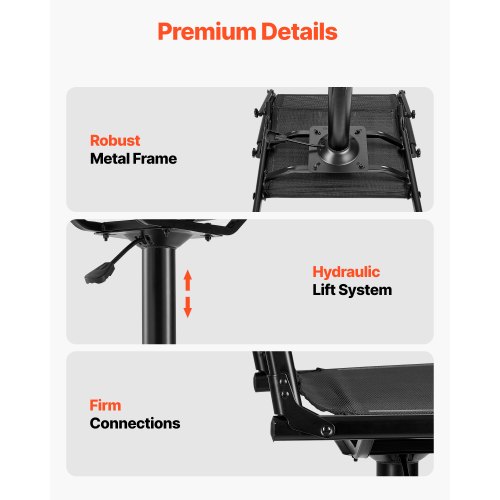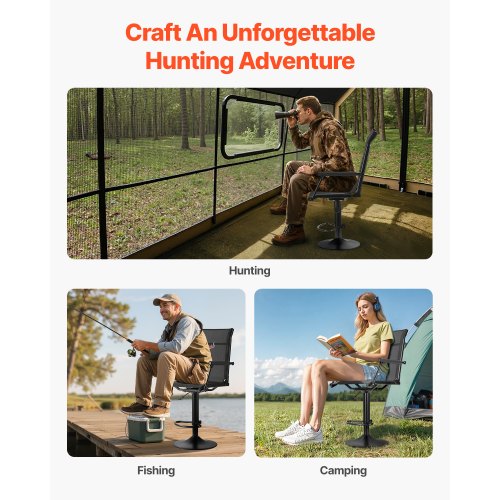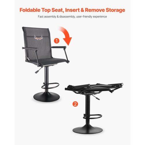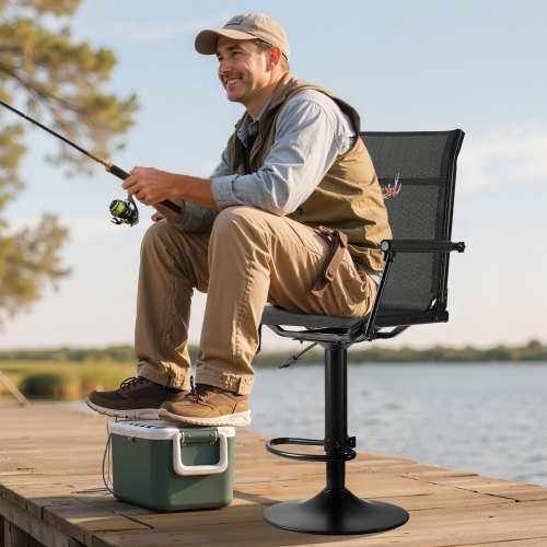 VEVOR Sedia da Caccia Campeggio Pieghevole, Sedia da Pesca con Braccioli, Altezza Regolabile Capacità di Carico 158 kg, Rotazione Silenziosa a 360°, Altezza Seduta 420-625 mm, Giardino, Esterno