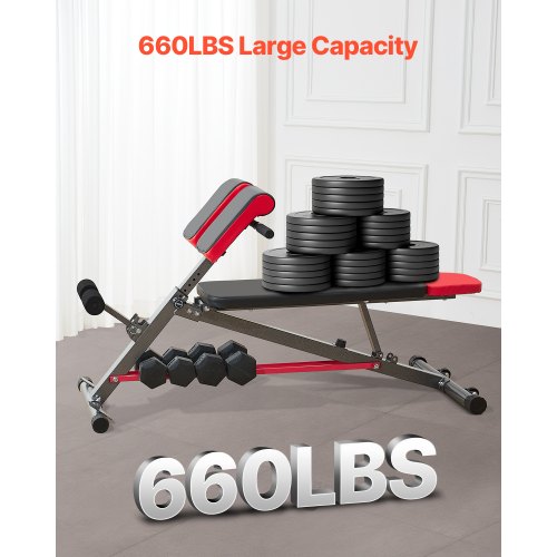VEVOR Panca Multifunzionale per Allenamento Completo del Corpo, Panca per Iperestensione con Sedia Romana, 350 kg per Allenamento di Addominali e Core di Schiena e Braccia, per Palestra Domestica