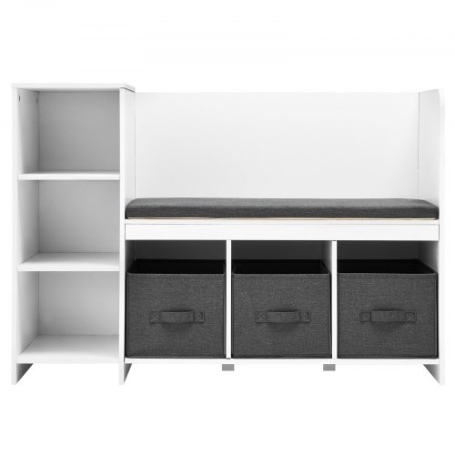 VEVOR Appendiabiti da Terra, Appendiabiti in Legno con Panca Scarpiera, Appendiabiti Bianco Ripiani Regolabili Ganci per Appendere, Appendiabiti con Striscia Luminosa USB, per Ingresso Corridoio Casa