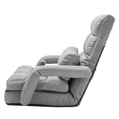 VEVOR Sedia da Pavimento 5 Posizioni Regolabili Supporto per la Schiena, Poltrona Pieghevole con Braccioli per Adulti, Divano Letto con Cuscino per Soggiorno Camera da Letto, Grigio
