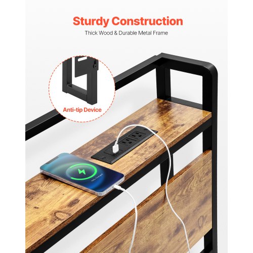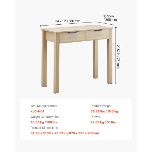 VEVOR Tavolo Consolle in Marmo 110 x 23,9 x 74,2 cm Tavolino da Corridoio Ingresso Stretto e Lungo con Presa di Corrente, con Tubi in Ferro e Supporto Triangolare per Soggiorno, Corridoio, Ingresso