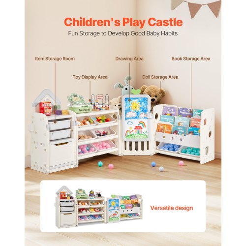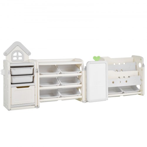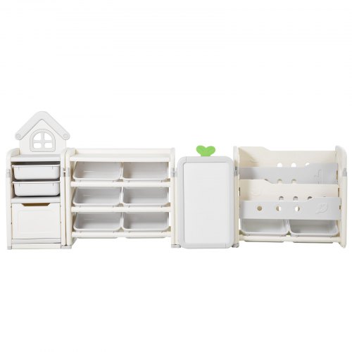 VEVOR Scaffale per Giocattoli in HDPE, Organizzatore per Giocattoli Multifunzionale a 4 Ripiani con 10 Contenitori in Plastica Flessibile e Tavolo da Disegno, per Camera da Letto e Aula, Grigio Beige
