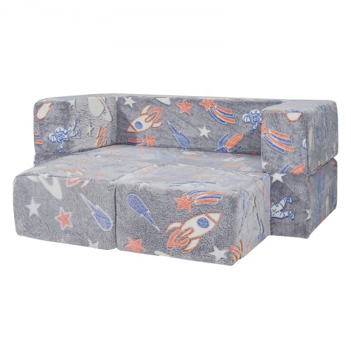 VEVOR Divano Modulare per Bambini, 4 Pezzi, Si Illuminano al Buio, Divano Convertibile Componibile con Fodera Rimovibile Cuscino in Schiuma, Fai da Te Mobili Sala Giochi per Bambini Leggere Grigio