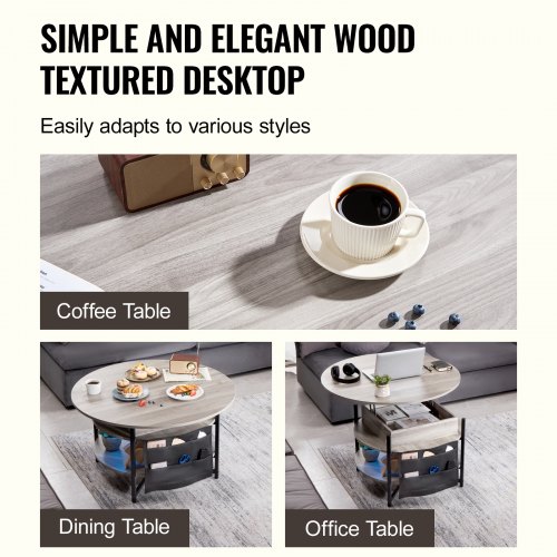VEVOR Tavolino da Caffè con Piano Sollevabile 900 x 900 x 510 mm Tavolino da Caffè Rotondo con Tasche Portaoggetti Extra, Tavolino da Caffè Sollevabile Capacità di Carico 50 kg per Soggiorno, Nero