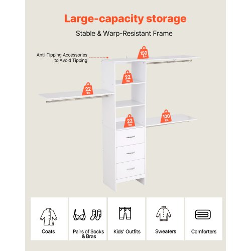 VEVOR Portaoggetti da Appendere a 3 Cassetti, Appendiabiti Regolabile in Legno, Organizzatore per Guardaroba con 3 Aste Appendiabiti Estensibili 575-1020 mm, Sistema per Cabina Armadio