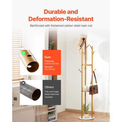 VEVOR Appendiabiti da Terra 340 x 340 x 1700 mm Appendiabiti Indipendente con Base in Pietra di Quarzo e 9 Ganci, per Ingresso, Camera da Letto, Ufficio, Soggiorno, per Cappotti, Cappelli, Sciarpe
