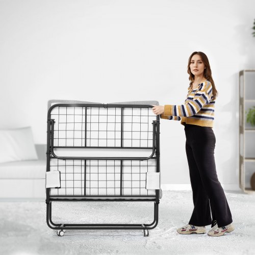 VEVOR Divano Letto Pieghevole con 3 Cuscini e Fodera Lavabile, Poltrona Letto Trasformabile in Memory Foam ad Alta Densità 25D, Divano Futon per Soggiorno, Camera da Letto, Grigio Chiaro Matrimoniale