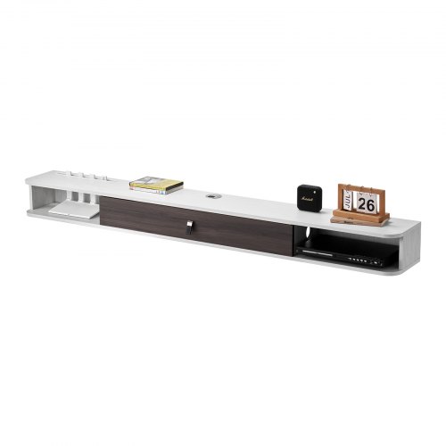 VEVOR Mobile TV Sospeso a Parete con Foro per Cavi, Mensola TV Galleggiante con Spazio di Archiviazione, per Lettore DVD, Console di Gioco, Capacità 52 kg, Bianco, 1800 x 236 x 160 mm