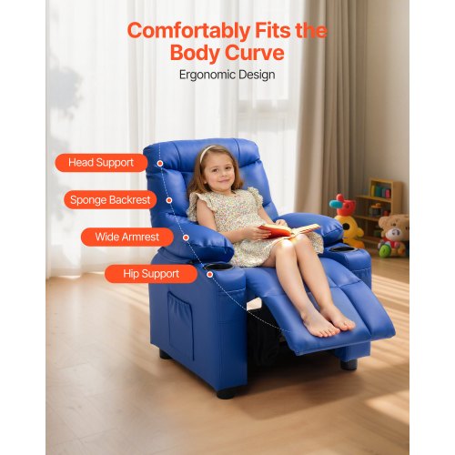 VEVOR Sedia Girevole da Ufficio Studio per Lavoro con Schienale Sedia Ergonomica Capacità Carico Max. 181kg, Sedia Ufficio Ergonomica Lombare Materiale in PU con Rotelle Schienale Reclinabile 90-120°