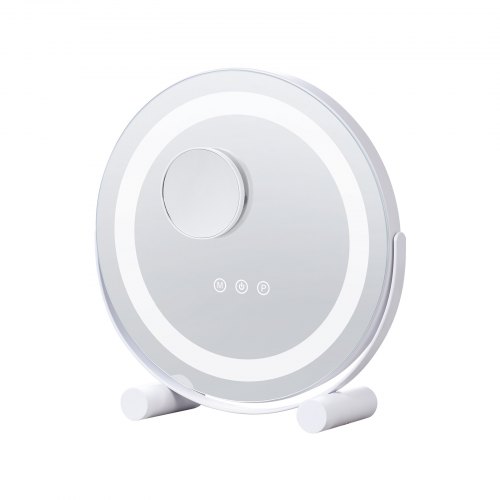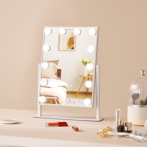 VEVOR Specchio per Trucco Illuminato con 12 Lampadine LED Dimmerabile 3 Modalità di Illuminazione a Colori con Specchio Ingranditore 5X Rimovibile Controllo a Tocco Rotazione a 360°, 41x30 cm