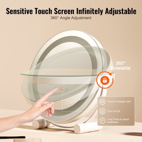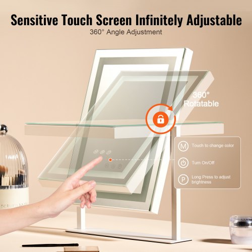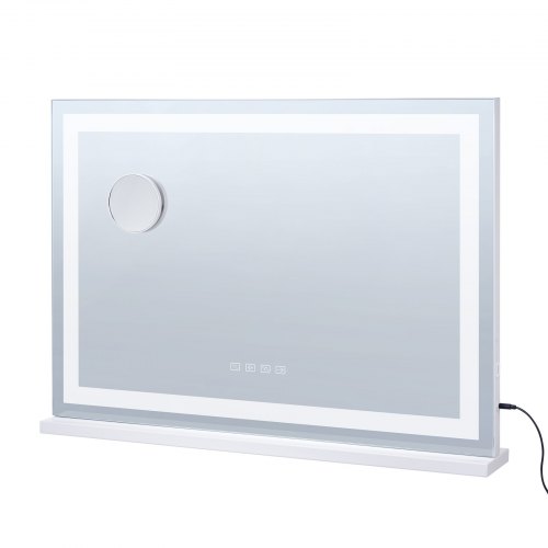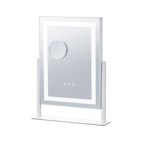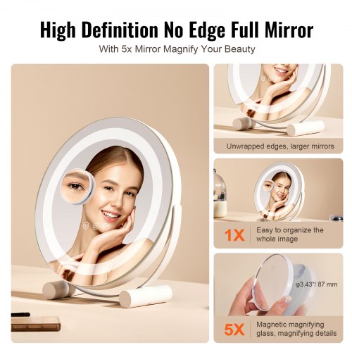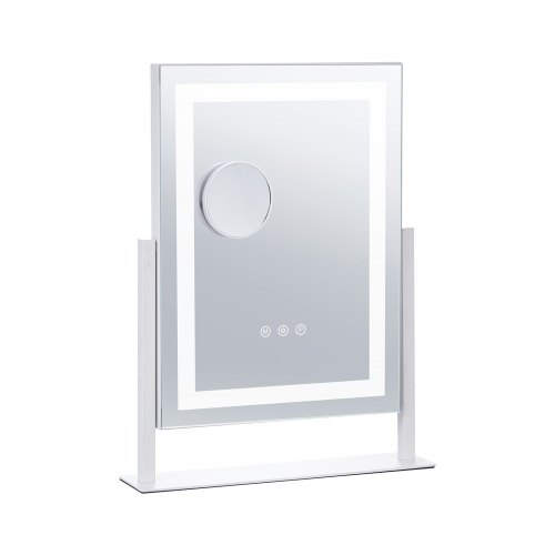 VEVOR Specchio per Trucco Illuminato con Lampadine LED Specchio per Trucco 3 Modalità di Illuminazione a Colori con Specchio Ingranditore 5X Rimovibile Controllo a Tocco Rotazione a 360°, 406x296mm