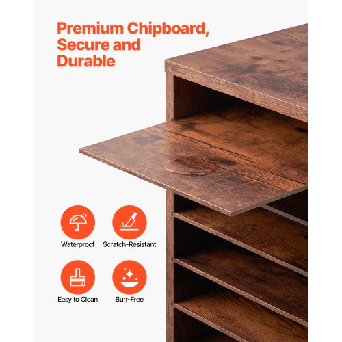 VEVOR Tavolino da Caffè in Stile Fattoria, Comodino Stretto con Porte USB e Prese, Tavolino a 4 Ripiani con Mobiletto Portaoggetti e 2 Cassetti, Ideale per Soggiorno, Camera da Letto, Ufficio, Marrone