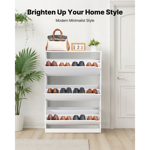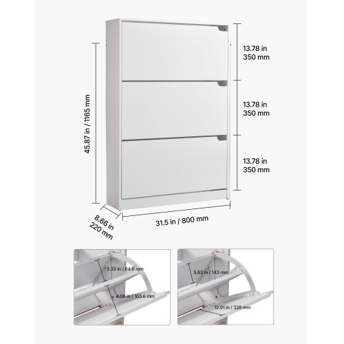 VEVOR Scarpiera con 3 Ante a Ribalta, Scarpiera Salvaspazio, Indipendente per Ingresso, Corridoio, Soggiorno, Veranda, Portascarpe Moderno 3 Cassetti Pieghevoli 800 x 220 x 1165 mm, Bianco