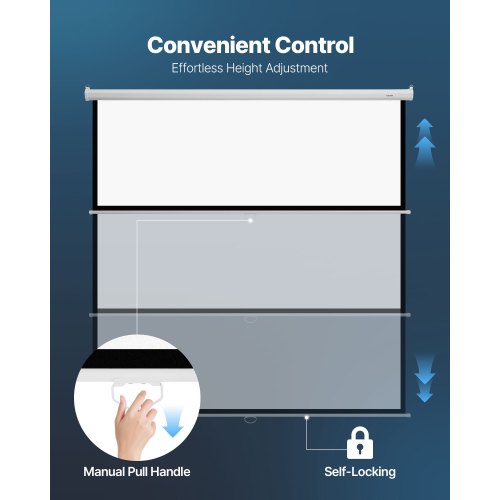 VEVOR Schermo per Proiettore Manuale, 3048 mm 1:1 4K 1080 HD, Proiezione di Film a Parete con Corda di Trazione, Schermo a Scomparsa Retrattile Avvolgibile Portatile per Teatro Domestico