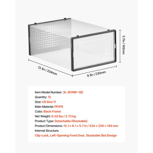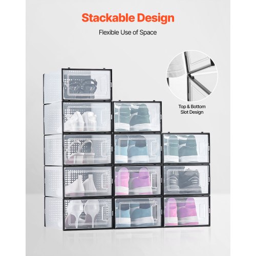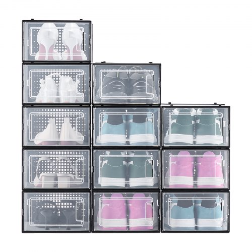 VEVOR Scatole Porta Scarpe, Adatte Fino alla Taglia 11 USA, 12 Scatole Porta Scarpe Impilabili, Contenitori Modulari in Plastica Salvaspazio per Riporre Stivali e Cappelli, con Telaio Nero