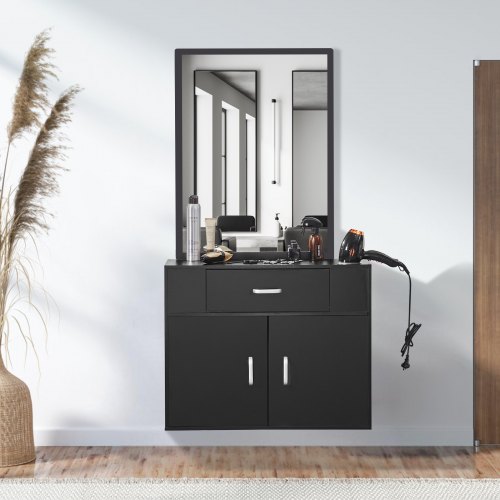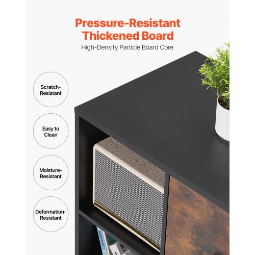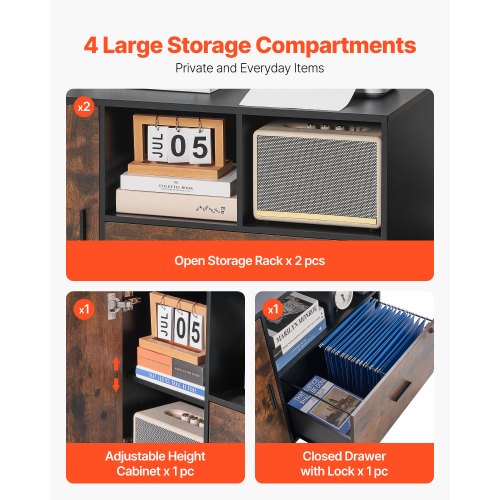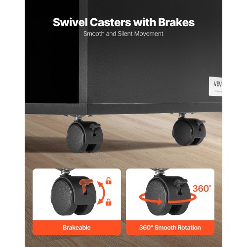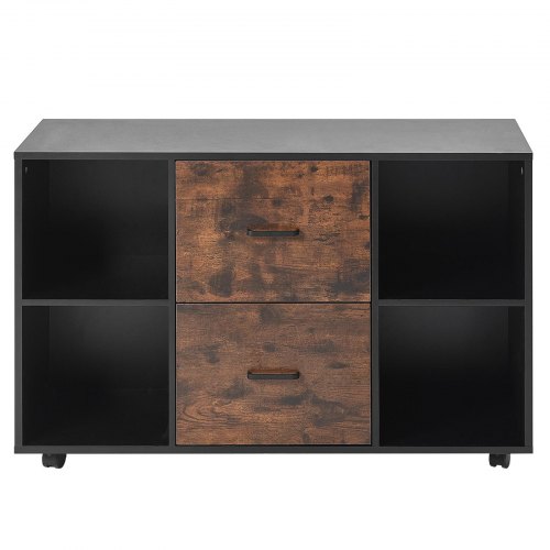 VEVOR Mobiletto Portadocumenti in Legno a 2 Cassetti, Mobiletto Mobile con Ripiani Aperti, Ruote Bloccabili, Supporto per Stampante Moderno e Indipendente per Casa, Ufficio, Scuola, Nero