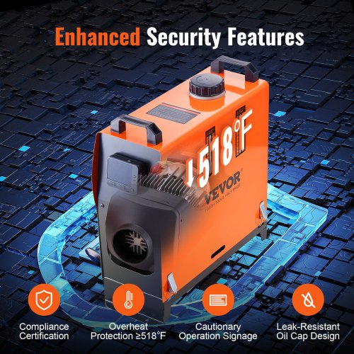 VEVOR Riscaldatore d'Aria Diesel 2 KW, 12V/24V, con Controllo APP Bluetooth, Telecomando Schermo di Visualizzazione, Allarme CO, Riscaldatore Diesel Portatile Riscaldamento per Veicoli e Spazi Aperti