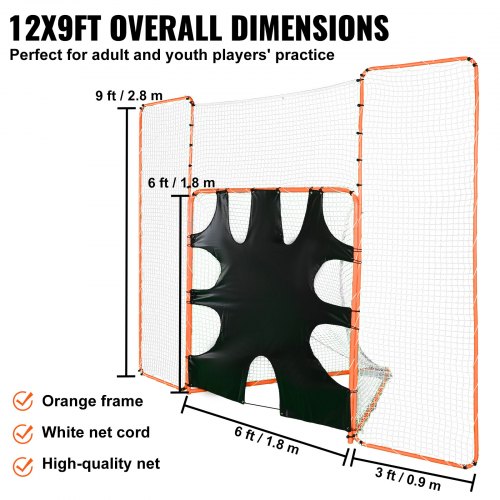 VEVOR Porta da lacrosse 3-in-1 con dispositivo antiritorno e bersaglio, rete da lacrosse 12' x 9', attrezzatura per rimbalzo da lacrosse con telaio in acciaio, rete da allenamento facile e veloce