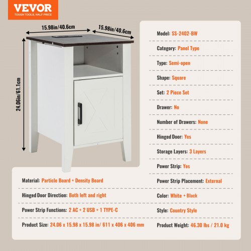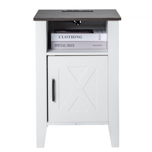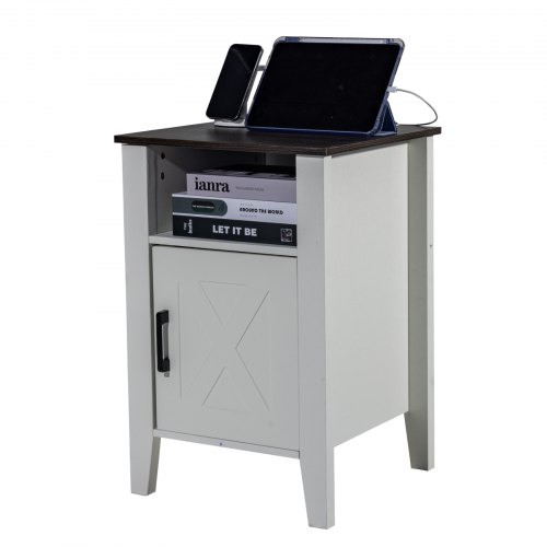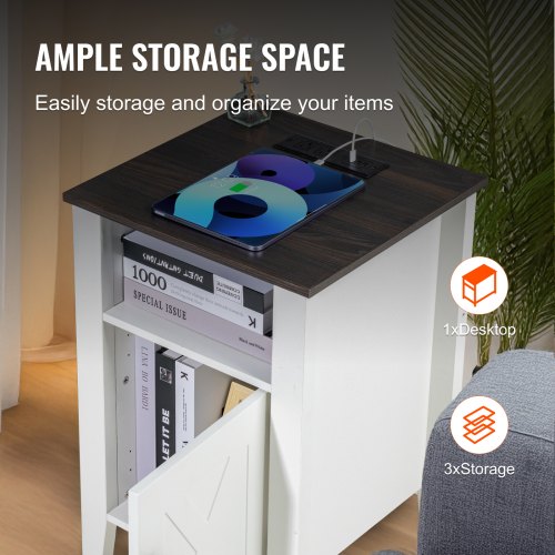 VEVOR Tavolino da Salotto in Stile Fattoria 610 x 457 x 608 mm Comodino da Casa con Porte USB e Prese, Tavolino a 3 Ripiani con Mobiletto Portaoggetti, per Soggiorno, Camera da Letto, Ufficio, Bianco
