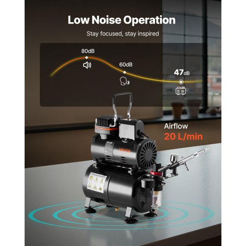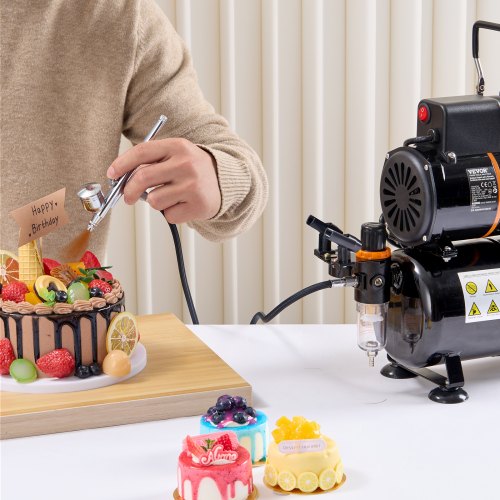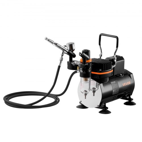 VEVOR Set Aerografo 1/6 HP Compressore d'Aria e Serbatoio, 1 Spruzzatore Aerografo Doppia Azione con 3 Ugelli (0,2/0,3/0,5 mm) Flusso d'Aria 23-25 L/min, Decorazione di Torte, Pittura di Modelli