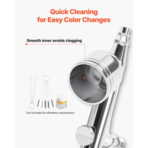 VEVOR Set Aerografo 1/6 HP con Compressore d'Aria, 1 Spruzzatore Aerografo a Doppia Azione con 3 Ugelli (0,2/0,3/0,5 mm) Set di Pulizia, per Decorazione di Torte, Pittura di Modelli