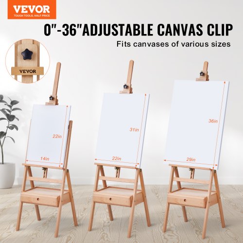 VEVOR Cavalletto da Studio con Struttura a H, Cavalletto in Faggio con Ruote e Vassoio Portaoggetti, Capacità 10 kg, Cavalletto Regolabile per Pittura Artistica per Quadri su Tela Fino a 920 mm
