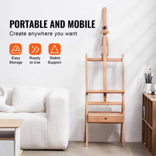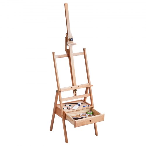 VEVOR Cavalletto da Studio con Struttura a H, Cavalletto in Faggio con Ruote e Vassoio Portaoggetti, Capacità 15 kg, Cavalletto Regolabile per Pittura Artistica per Quadri su Tela Fino a 1210 mm