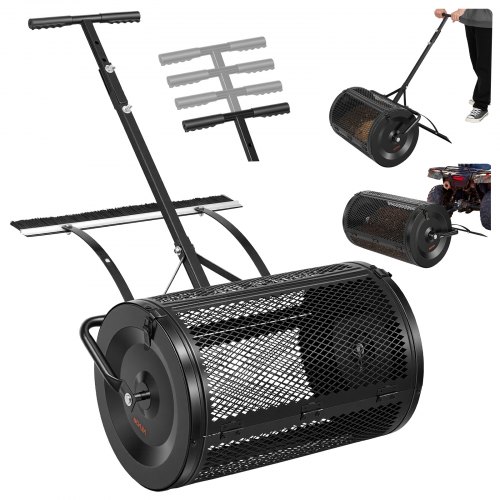 VEVOR Spargitore a Rullo per Compost Giardino, Spargitore per Terreno Larghezza 61 cm Rullo a Rete per Distribuzione di Muschio da Prato Maniglia a Spinta Altezza Regolabile, Spandiconcime per Prato