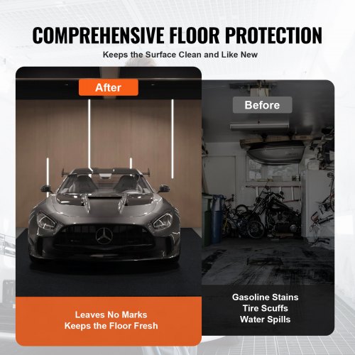 VEVOR Tappetino Garage 2286x5791,2x2,4 mm Tappetino Antiscivolo Impermeabile Protezione Acqua Neve Pioggia Fango Olio per Auto con Supporto in TPE Anti-Perdite, Facile da Pulire, Tagliare, Vari Usi