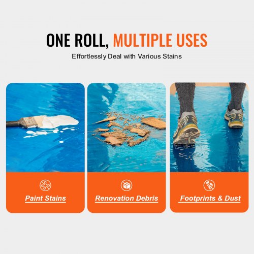 VEVOR Pellicola Protettiva per Tappeti, 0,9 x 60,96 m Protezione Pavimenti Superfici con Supporto Autoadesivo Rotolo Protettivo, per Tappetini Auto Adesivo Polietilene per Ristrutturazioni Edili